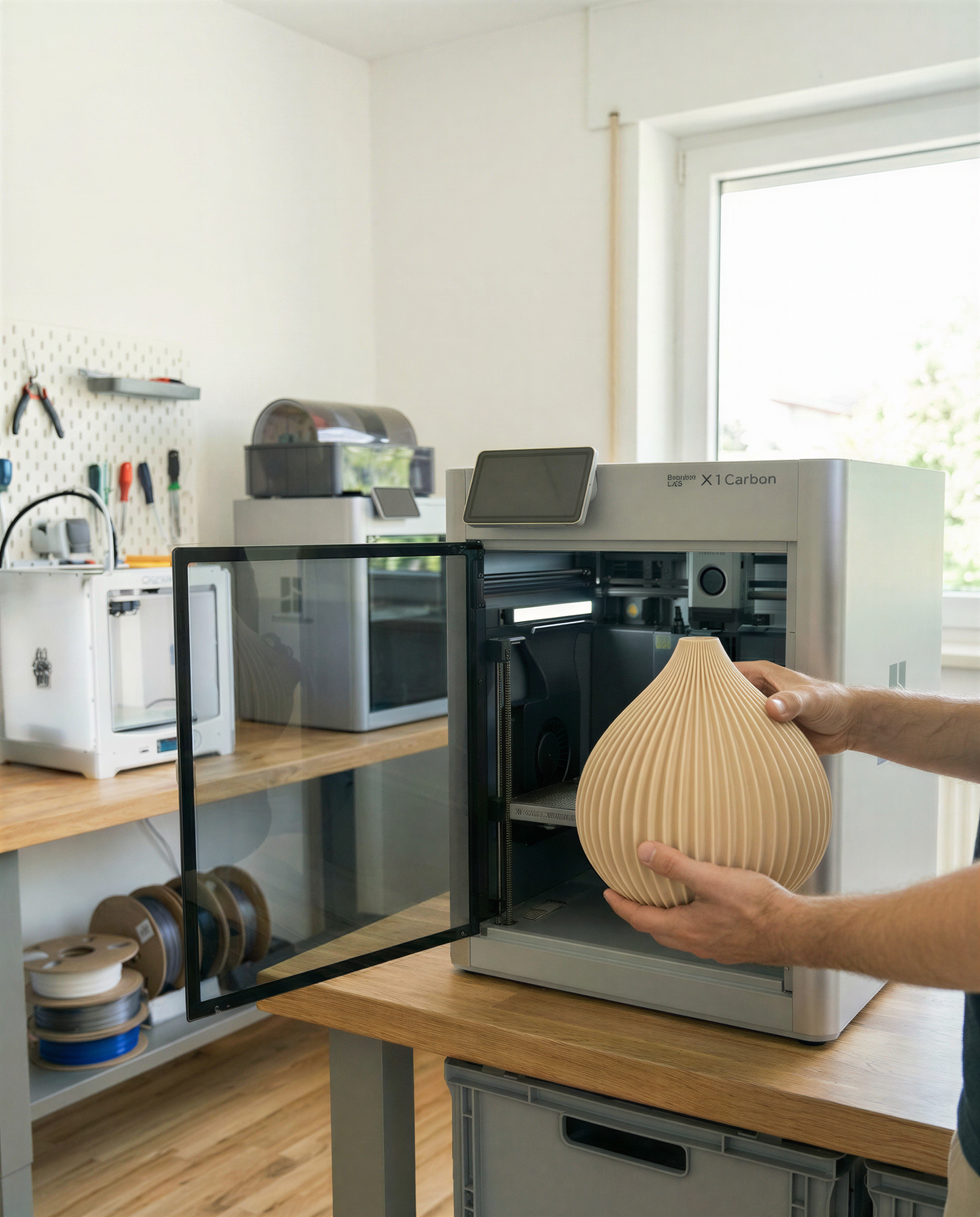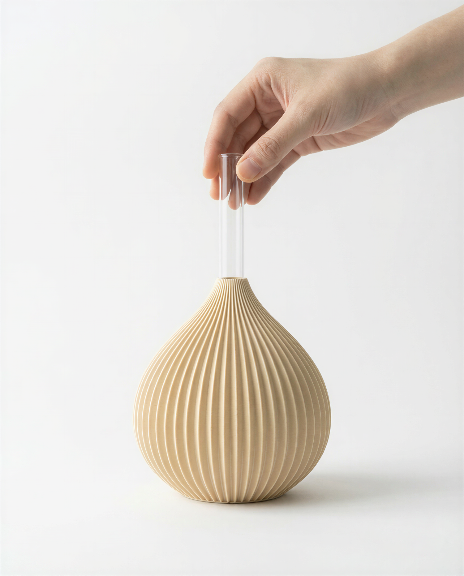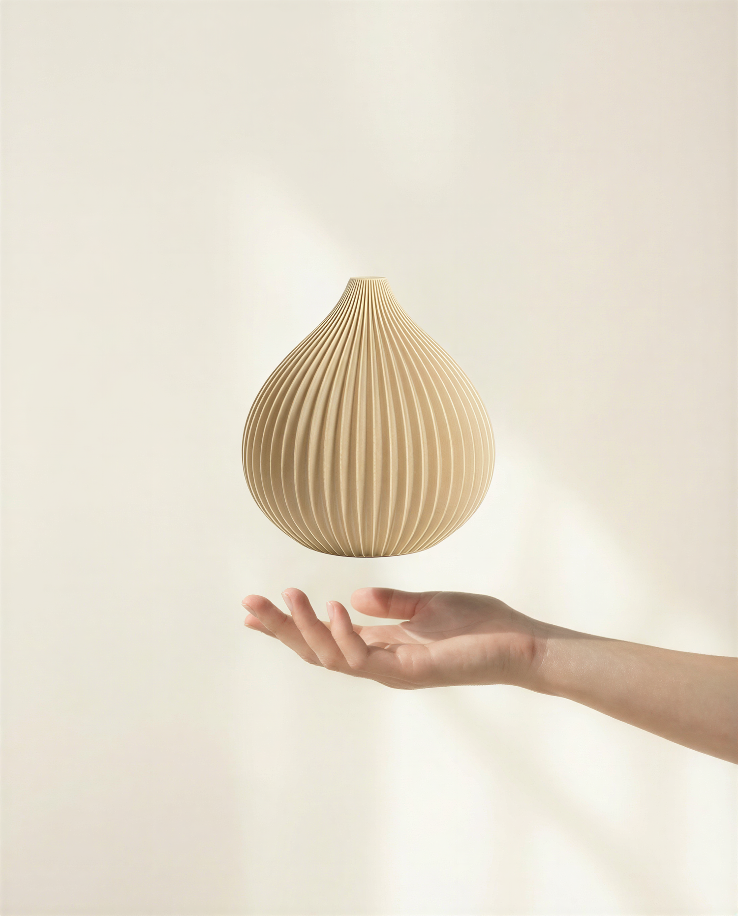 Wir glauben an Materialien, die gut aussehen und sich gut anfühlen, ohne die Umwelt zu belasten. Unsere Vasen werden nicht aus erdölbasiertem Plastik gefertigt, sondern aus hochwertigem PLA. Das ist ein biokompatibler Werkstoff, der auf natürlichen Rohstoffen wie Maisstärke basiert. So vereinen wir futuristische Fertigung mit dem Besten aus der Natur.